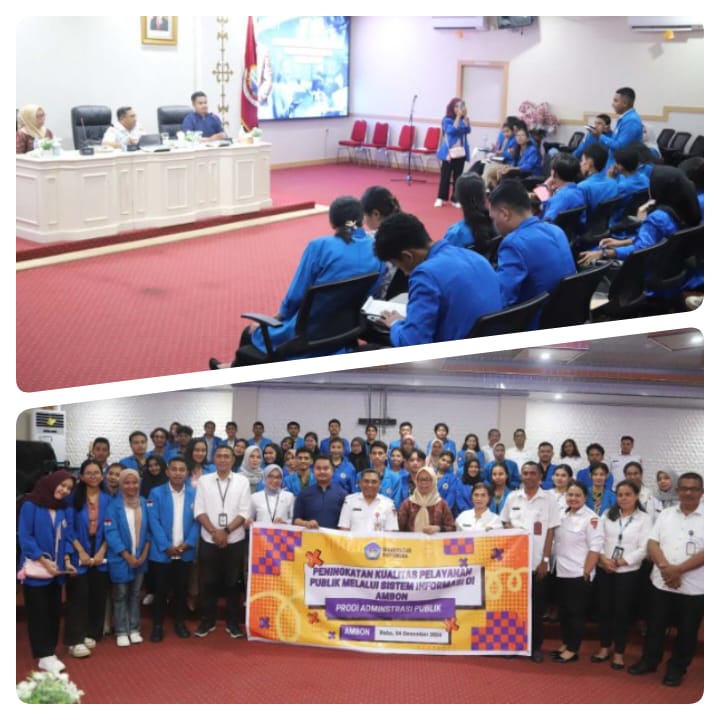 Puluhan mahasiswa jurusan Administrasi Publik Fakultas Ilmu Sosial dan Ilmu Politik (FISIP) Universitas Pattimura (Unpatti) mengadakan kunjungan lapangan ke Pemerintah Kota (Pemkot) Ambon. Kegiatan ini merupakan bagian dari kuliah lapangan bertema “Peningkatan Kualitas Informasi Publik melalui Sistem Informasi di Kota Ambon”, yang berlangsung di Ruang Vlissingen Balai Kota Ambon, Rabu (4/12/2024).