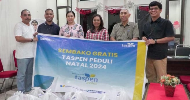 Merayakan Natal PT Taspen (Persero)cabang Ambon menyerahkan 50 paket sembako gratis kepada Aparatus Sipil Negara ( ASN)