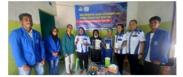 Kegiatan Pengabdian Masyarakat PNBP yang di koordinir oleh ketua tim Kristina Rahael, S.Pi.,M.Si, dengan anggota pengabdi Tati Atia Ngangun, SE.,MM., Anna Maria Ngabalin, SE., M.Si., Meyske Angel Rahantoknam, SE., M.Si, dan Cawalinya Livsanthi Hasyim, S.Ksi., M.Si bertujuan untuk membantu masyarakat di desa Dullah Laut Kota Tual dalam mengembangkan usaha Stik Rumput Laut. Usaha ini sudah dirintis cukup lama, sejak tahun 2018, namun kelompok usaha tersebut belum memahami dengan baik penerapan teknologi yang dapat mempermudah pengolahan Stik rumput laut mereka. Permasalahan Manajemen Usaha dan pengelolaan seperti pengemasan yang menarik dan higienis, Pemahaman mitra terkait pemasaran, dan pemahaman pencatatan keuangan yang belum baik, masih menjadi kendala kelompok ini dalam pengembangan usahanya. Untuk itu perlu dilakukan penyuluhan, pelatihan, pendampingan dan pemberian bantuan alat, guna meningkatkan daya saing produk dan tata kelola usaha, agar mampu bersaing dan berkembang secara berkesinambungan.