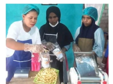 2. Penyuluhan, pelatihan dan pendampingan mentransfer pengetahuan terkait kemasan produk Stik Rumput Laut yang berlabel, menarik dan higienis,