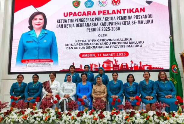 Ny.Lisa Wattimena resmi dilantik sebagai Ketua Tim Penggerak PKK (TP-PKK), Ketua Pembina Posyandu, dan Ketua Dekranasda Kota Ambon dalam sebuah acara yang berlangsung di lantai 7 Kantor Gubernur Maluku, Selasa (11/3/2025). Pelantikan tersebut juga dihadiri oleh Ketua TP-PKK, Ketua Pembina Posyandu, dan Ketua Dekranasda Provinsi Maluku, Ny. Maya B. Lewerissa.