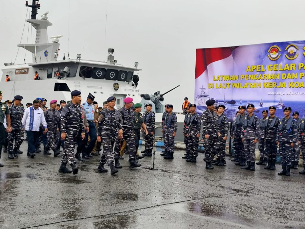 Susunan pasukan apel gelar pasukan diisi oleh 3 Pleton Lantamal IX, 1 Pleton Dirpolairud Polda Maluku, 1 Pleton gabungan Basarnas, Bakamla dan KSOP serta 1 Pleton Tim korban Lantamal IX. Peralatan yang digunakan dalam apel gelar pasukan diantaranya 1 Unit Sea Rider Lantamal IX, 3 Unit mobil Ambulance Lantamal IX, 1 Unit mobil Ambulance dinas kota, 1 Unit mobil Basarnas Kota Ambon, 1 Unit HHulux Basarnas, 1 Unit RBB Basarnas Kota Ambon, 1 Unit Aquaeye Basarnas, 1 Unit perahu Karet Basarnas, 2 Unit peralatan Selam Basarnas, 4 Unit peralatan penyelam Lantamal IX, 4 Unit pompa Selam Lantamal IX, 1 Unit Tali dan pelampung Lantamal IX.