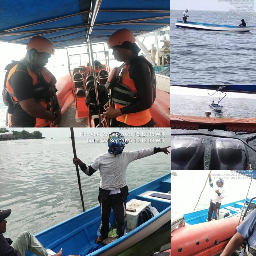 Dua nelayan asal Kabupaten Kepulauan Aru berhasil diselamatkan tim SAR gabungan setelah perahu katinting yang mereka gunakan mengalami mati mesin di antara perairan Wangel dan Durjela, Sabtu (27/9/2025).