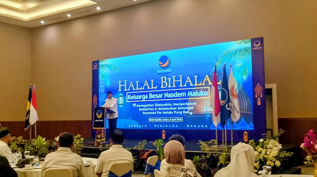 Suasana hangat penuh kebersamaan mewarnai kegiatan Halal Bihalal yang digelar keluarga besar Partai NasDem Provinsi Maluku, Rabu (8/4/2026), di Santika Premiere Hotel Ambon. Kegiatan ini menjadi ajang strategis untuk mempererat silaturahmi sekaligus memperkuat konsolidasi internal partai pasca Hari Raya Idul Fitri 1447 Hijriah.